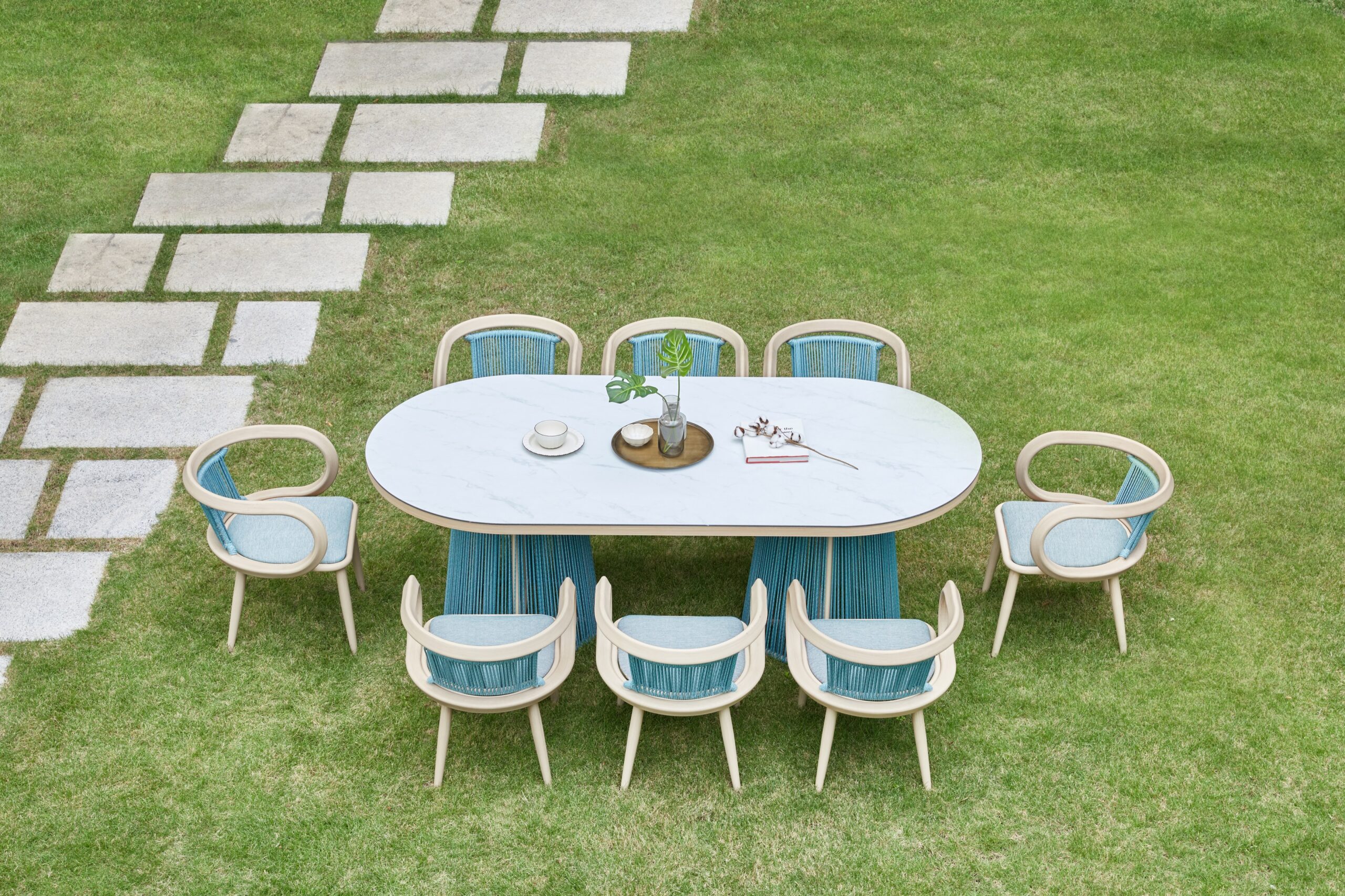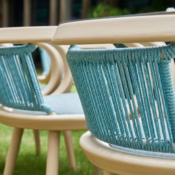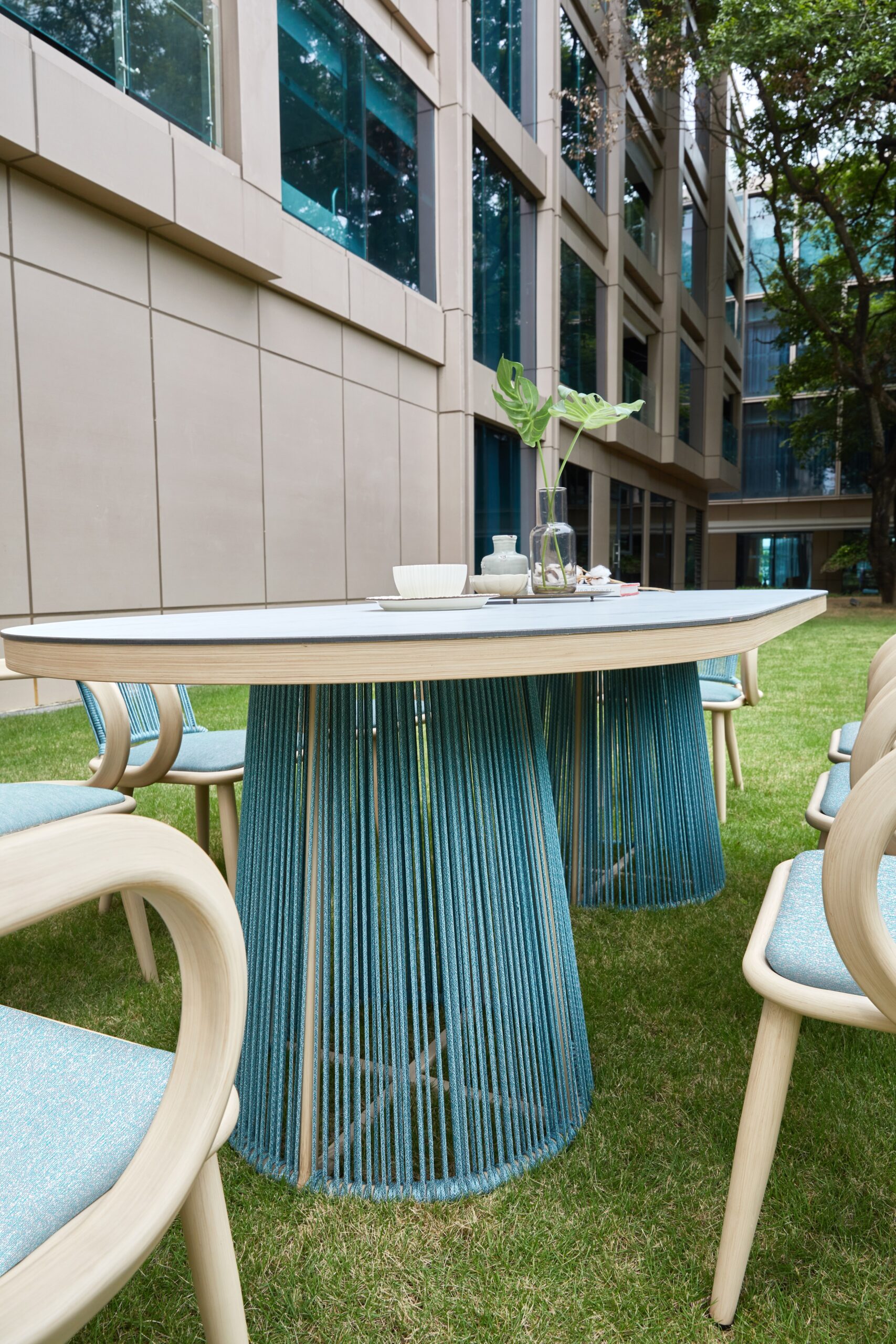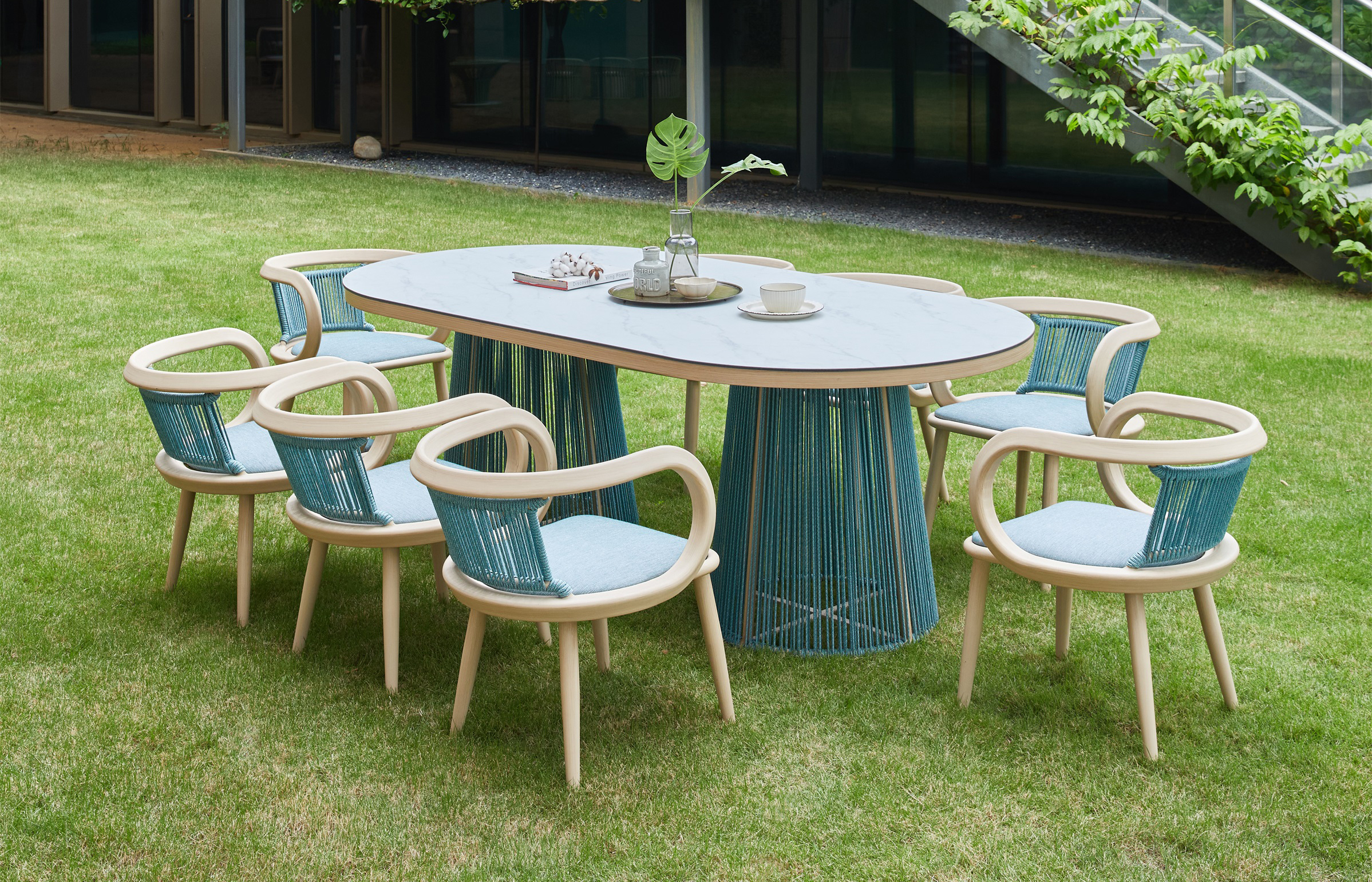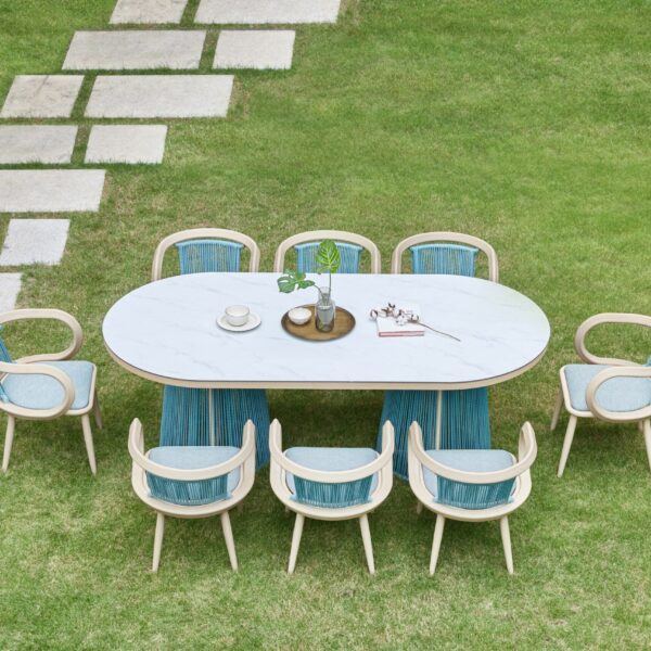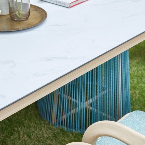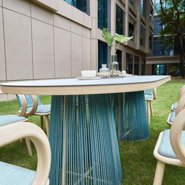 TUTU’s design inspiration originates from the elegance and strength of classical ballet. TUTU is one of the most iconic dance costumes in classical ballet, developed from the tutu dress of Louis XIV, embodying both lightness and tension. The TUTU collection employs graceful curves to create flowing, agile, and delicate movements, forming organic and soft shapes. The TUTU sofa set is characterized by a combination of symmetrical yet exaggerated backrests—thin yet strong, light yet taut. Its rounded and thick appearance conveys a strong sense of embrace, while the use of skin-friendly olefin braided cords, woven vertically, resembles the layered threads of the classic TUTU dress.