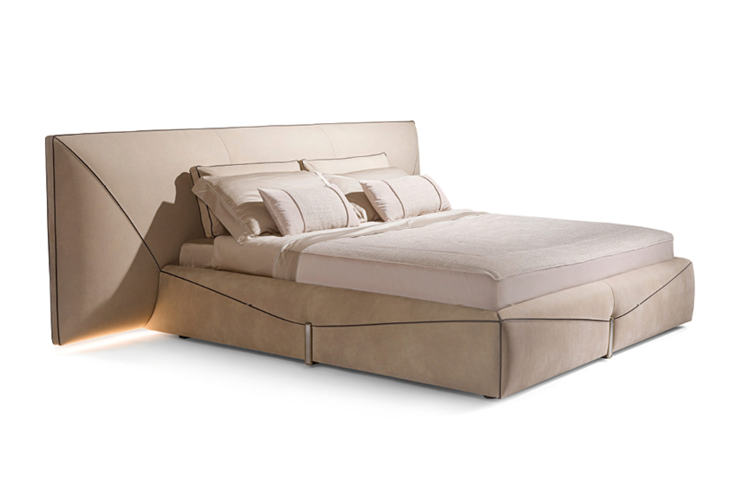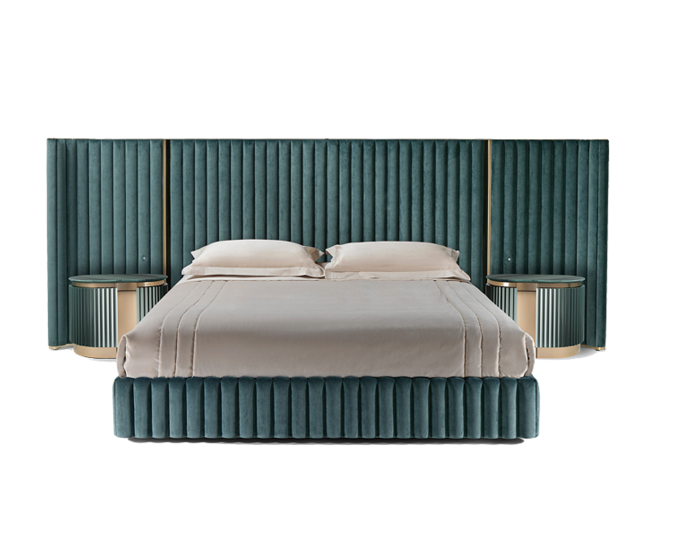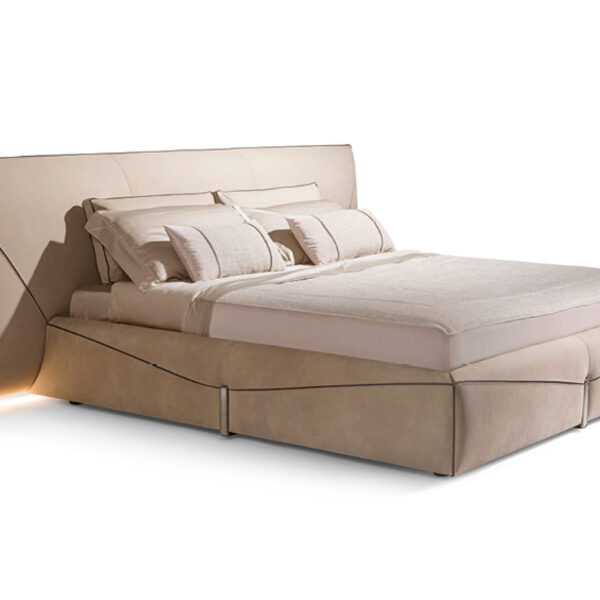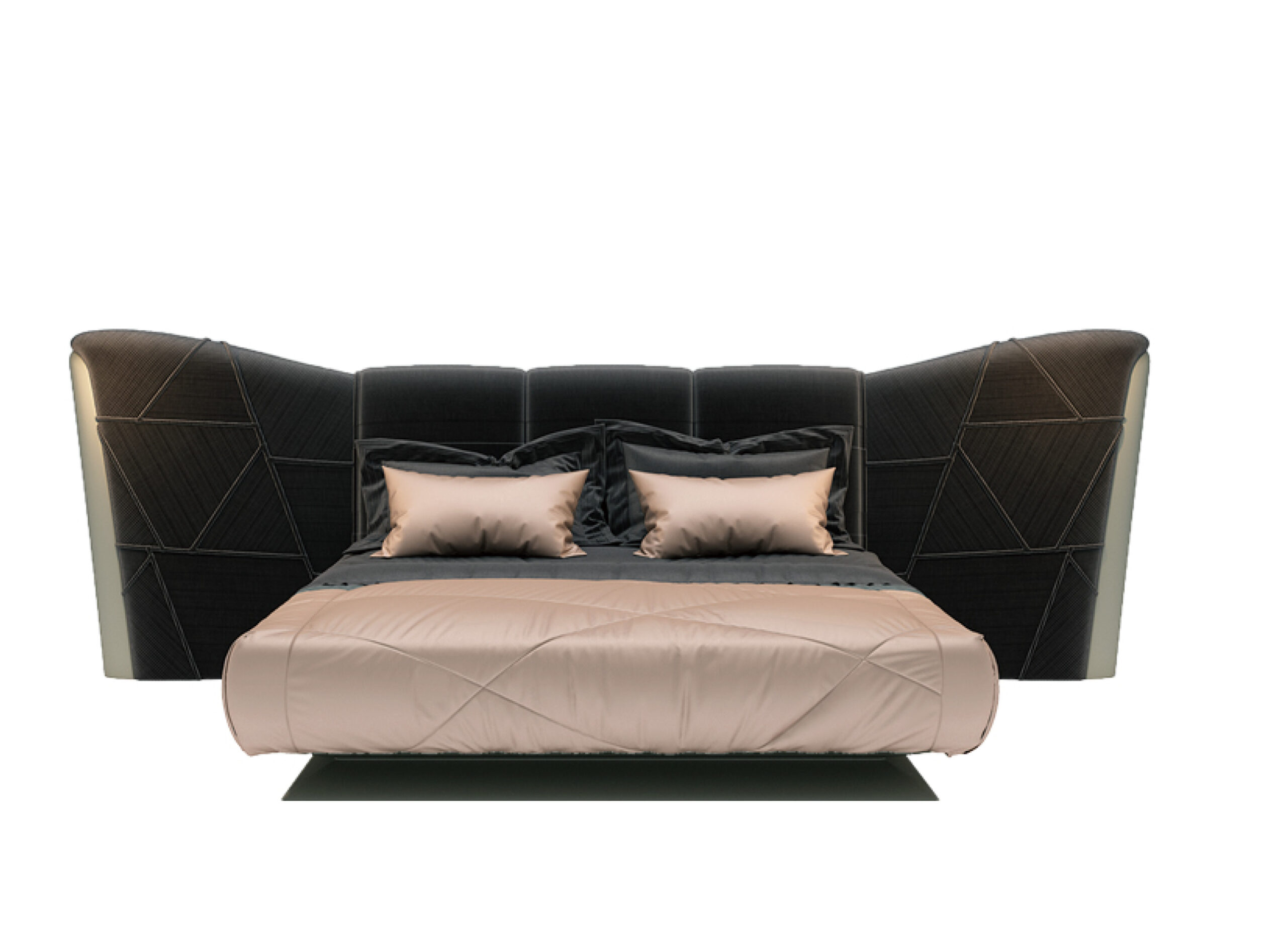 Chất liệu: Khung giường gỗ tự nhiên nhiều lớp bọc vải lưới xám Palpon + thép không gỉ màu đen vàng xước