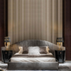 • Chất liệu: Khung giường gỗ tự nhiên kết hợp vòng thép + thép không gỉ màu đen vàng xước